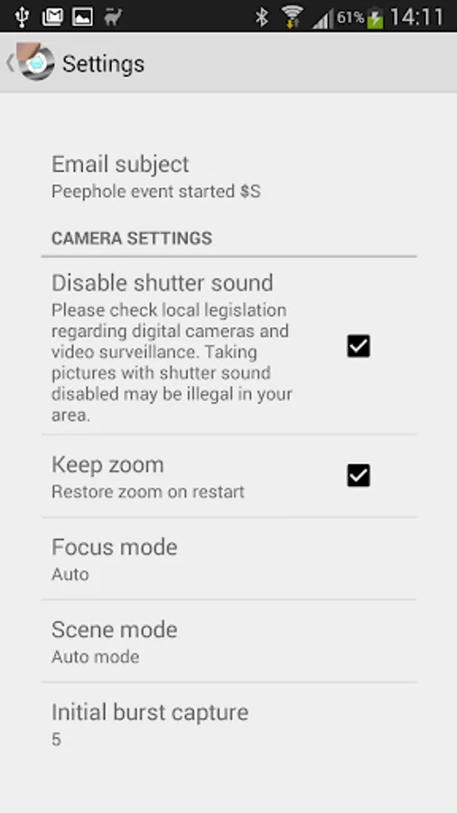 • Allows you to use camera's zoom. This is critical for peephole applicaiton. Full version also remembers zoom setting!