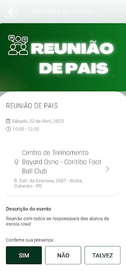 Official application of football schools Coritiba FC. With it, you can keep up to date on everything that happens at our institution, monitor your performance in training and do not miss any content. With qualified coaches, unique methodology and state-of-the-art infrastructure, our schools are the perfect choice for anyone looking to develop their skills in the world's most popular sport. Download now and start your journey towards football excellence.