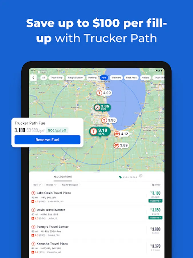 Trucker Path is the #1 truck navigation (Truck GPS) trusted by millions of CDL truck drivers. We focus on building maps for Truck Drivers, providing best-in-class trucker tools for truck navigation (Truck GPS), and finding the cheapest discounted fuel, truck stops, truck parking, weigh stations, and CAT scales.