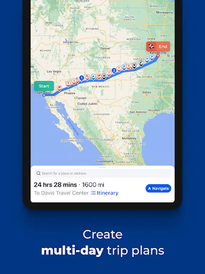 ★ Plan multi-day trips with our Trucking GPS(or RV GPS) free to download