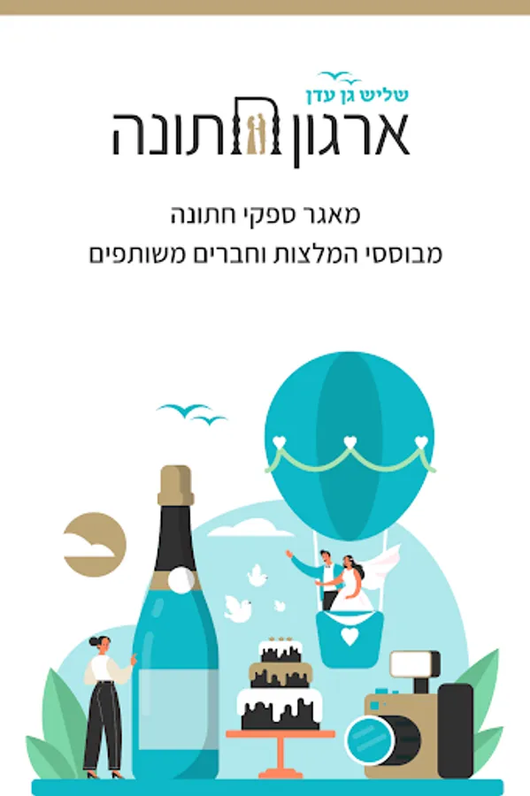 Wedding organization - one third of heaven includes recommended wedding suppliers, with a smart algorithm that will help you organize your wedding easily and quickly - based on recommendations of people getting married according to the principle of the "law of the combined religions" - we believe that this is how you will reach the suppliers that suit you best!