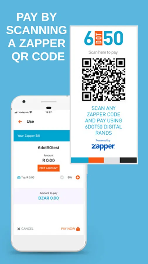 USE your Digital Rands to enjoy cashless, contactless and safe digital payments by simply scanning any ZAPPER QR Code, accepted at more than 25,000 merchants including eCommerce, retailers, restaurants, pharmacies, fuel stations, market vendors and charities, OR create and use a Token Number to pay for goods and services at till points including Shoprite, Checkers, Usave, K’nect, Poetry, Cape Union Mart, Keedo, Tread+Miller and Old Khaki stores OR simply SEND Digital Rands directly to a merchant’s 6DOT50 merchant account.