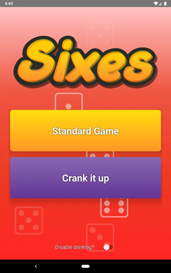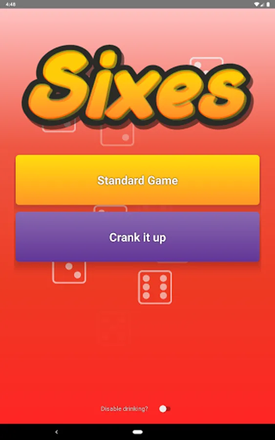 Sixes is a fun dice party game. Throw the dice: if you get six, you pass the phone over to the next player. Whoever has the phone when the time runs out, looses.