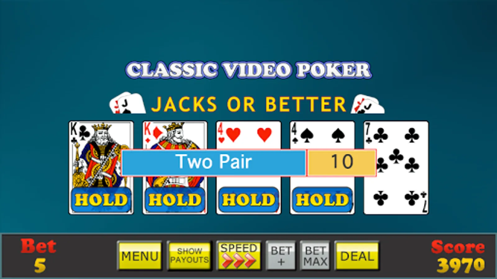 The original classic single player video poker experience, just like the classic machines in Vegas.