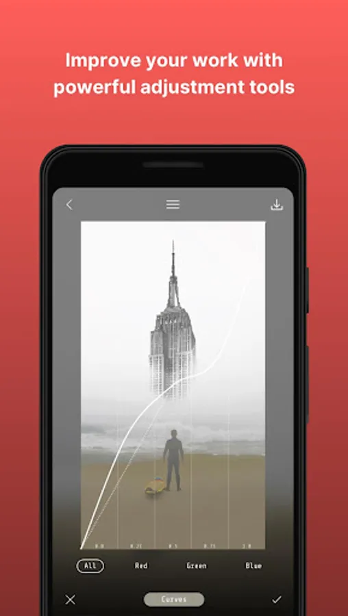 However, a plenty of features have been added in this version, which turn Shapical X into a complete all-in-one photo editor. There is an opportunity not only to add lines and shapes, but also to add graphic patterns, mix photos with photos, add complex graphic dynamic objects, including gradients in the baugasm style, as well as pixelation effects, smudge, glitch, noise, vhs. Now Shapical X allows to use double exposure, blending, photo collages, and a large number of color correction settings, such as color curves, Contrast, Shadows, Highlights, Exposure, Warmth, Brightness, Sharpen, Fade and Layers opacity.