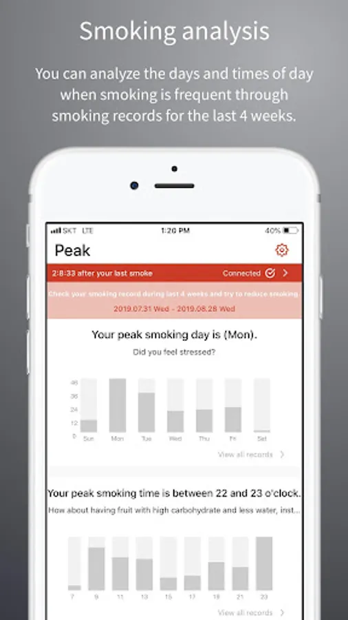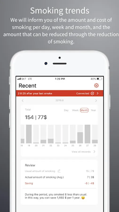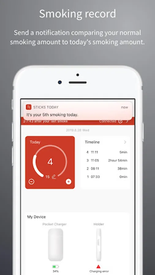 : You can check your smoking history by daily, weekly and monthly graphs.