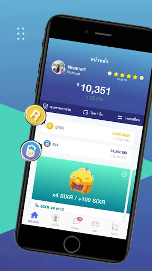 The SIXR application is designed as a collection app for Tokens. Play games, buy, talk in the world of SIXR and enjoy with friends in Economy and ecosystem in the digital world on platforms that Whether it's a SIXR game or connecting with various partners like Ookbee U App, which has a Token accumulation system so that people can be used to exchange things in real life