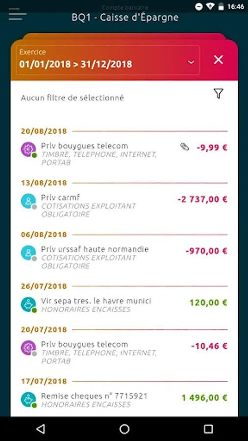 Your banking transactions are automatically synchronized and categorized up to 95% in the headings of your professional tax return and assigned to the correct accounting accounts.