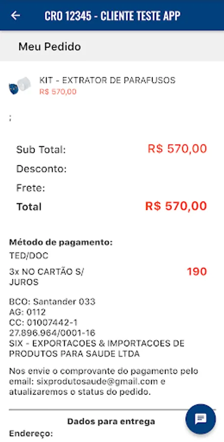 Application developed for SIX Saúde's customers to follow up on their orders and clear up their doubts about them.