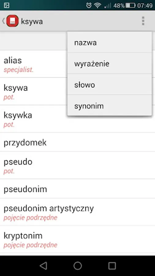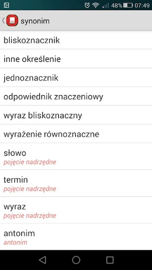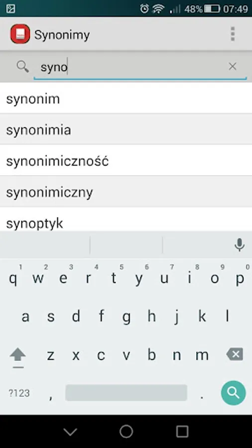 - Fast search - just enter a few letters, and the dictionary will show synonyms found