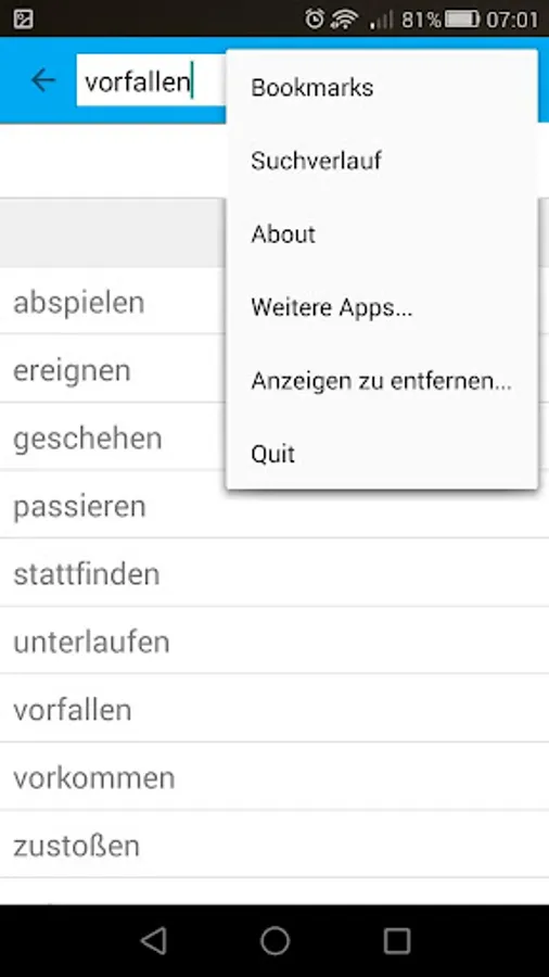 Synonym is a word with the same or similar meaning of another word. The application is a dictionary of German synonyms. Dictionary it does not need internet connection - works offline. Application contains about 50,000 synonyms.