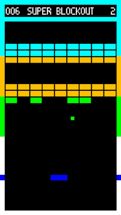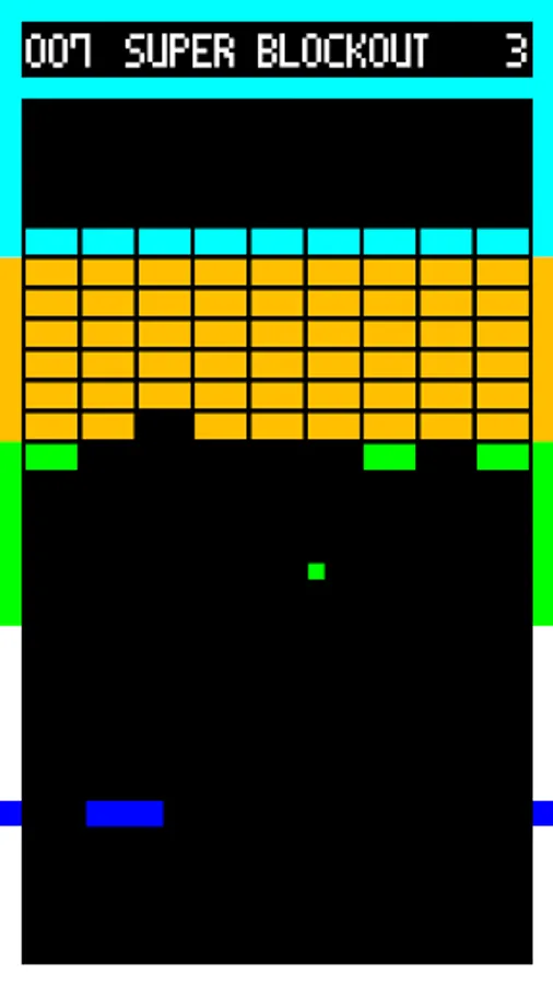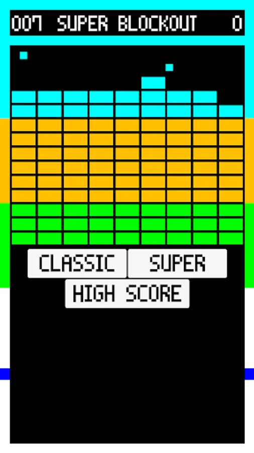Move the paddle horizontally by moving your finger on the touchscreen. Hit the ball with the paddle and break as much blocks as possible. There are two modes, Classic and Super. Classic uses the basic Breakout formula where the blocks don't move and refreshes when it's all gone. Super uses the cavity mode, making new lines every few seconds.