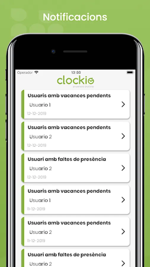 -Notifications. Clockio notifies you of any absence or when your projects are running out of hours. All controlled.