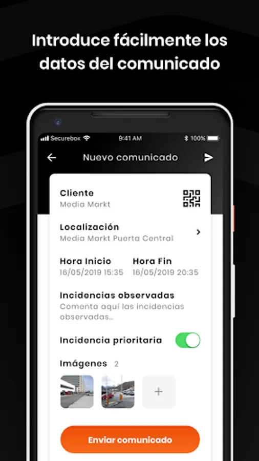 The IB2 Security App allows you to easily send daily work announcements. A simple form saves time and paper to the company.
