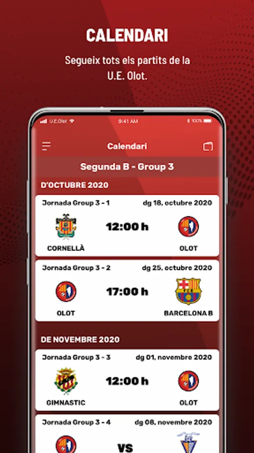 You will have all the information of your favorite club on your mobile or tablet. Do not miss the minute by minute league games, as well as the rest of the competitions. All the information and latest news from the EU Olot in real time!