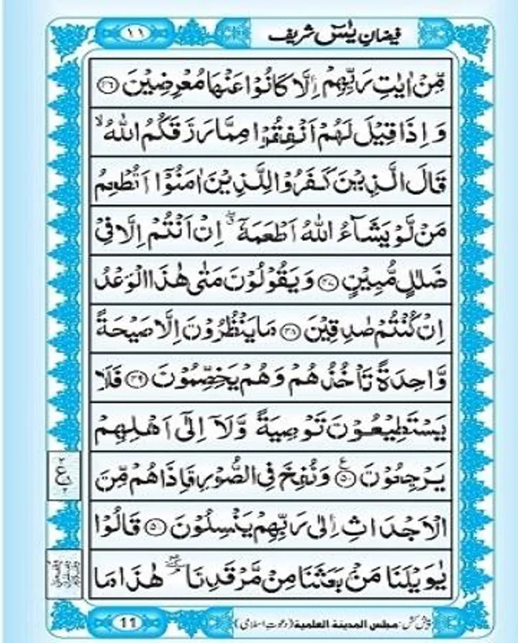 Hadhrat ‘Ataa’ bin Abi Ribaah (Radhiyallahu Anhu) says that the Prophet Mohamed (Sallallahu Alaihi Wasallam) reportedly has said, “Whoever reads Surah Yaseen at the beginning of the day — all his needs for that day will be fulfilled.”