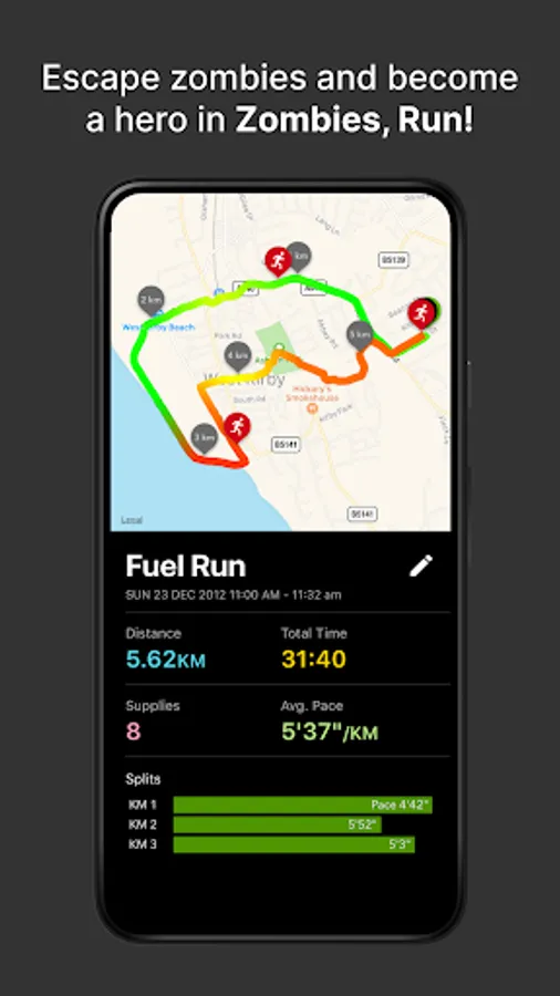 “Evaded all zombie mobs :-) One of my best sprints ever; this app works!”
