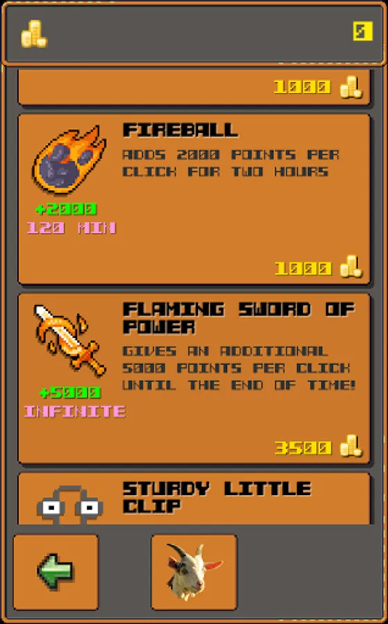 This clicker is active! Not passive! Click away on your goat to get the gold! Go on, click it! But always make sure that your goat never meets a horse, because goats and horses are not a good mix. You must use this knowledge.