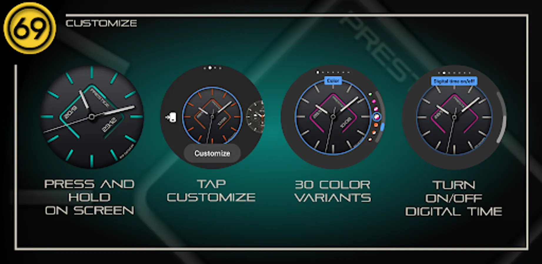 In case of problems with the installation of the watch face on your watch, please copy the link below and paste it into your web browser (not Google play app), there you will be able to choose the device on which watch face should be installed.