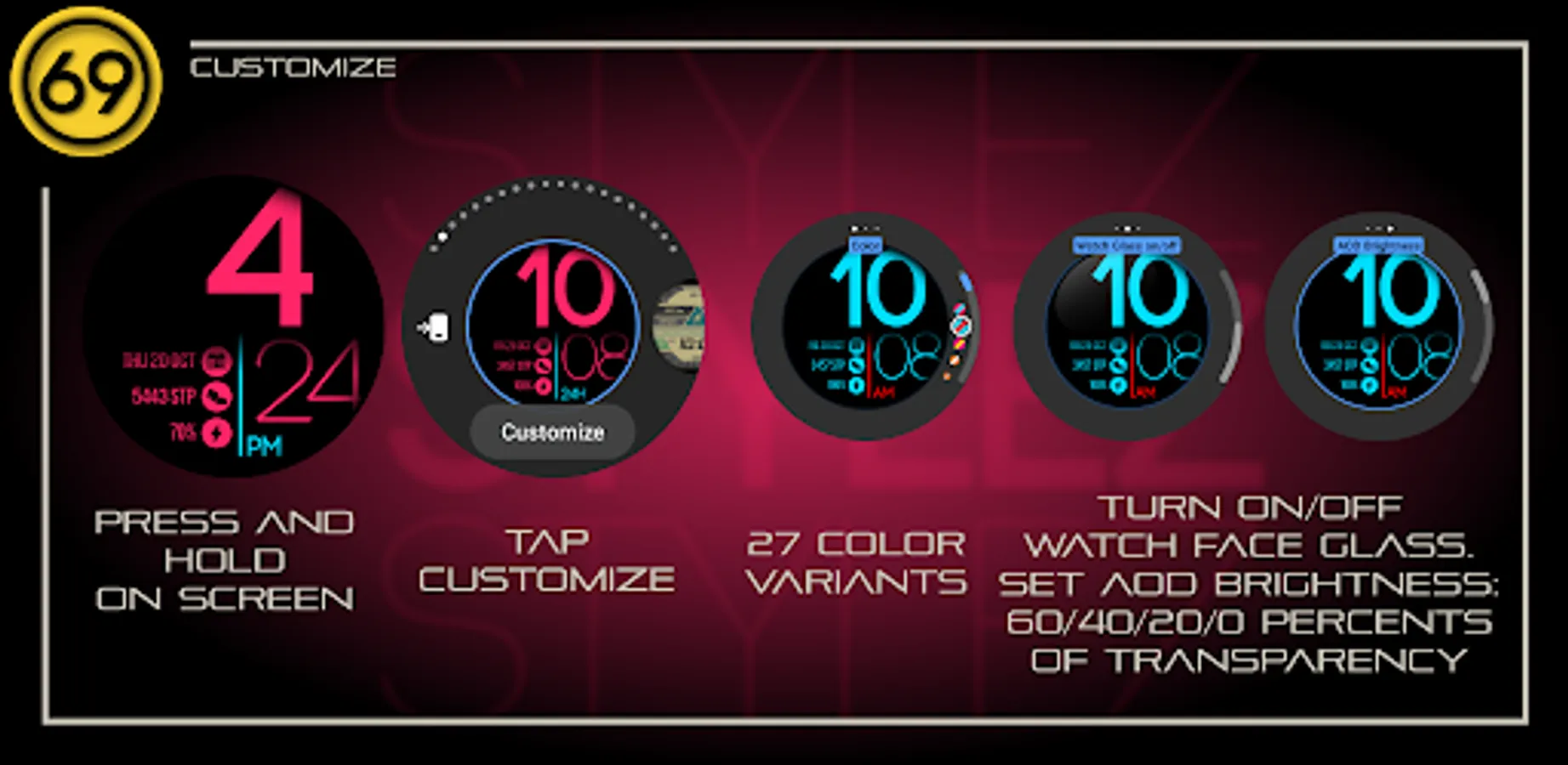 All watch faces are tested on Samsung Galaxy Watch 4 devices.