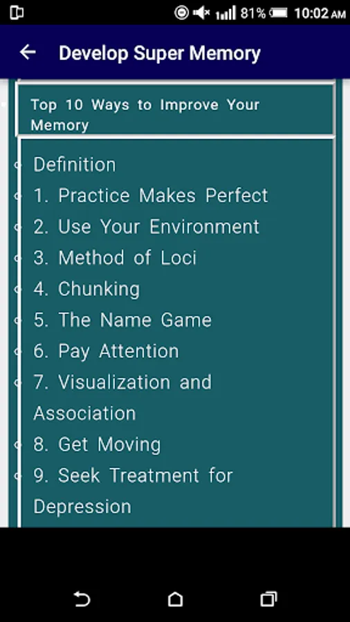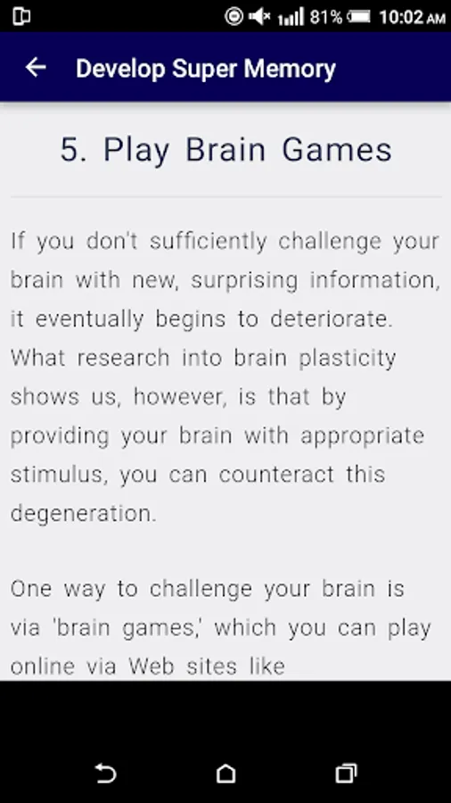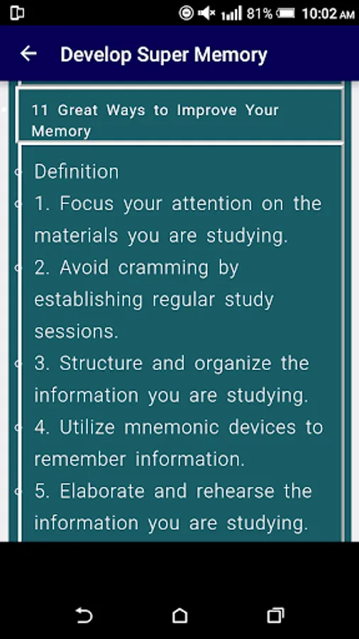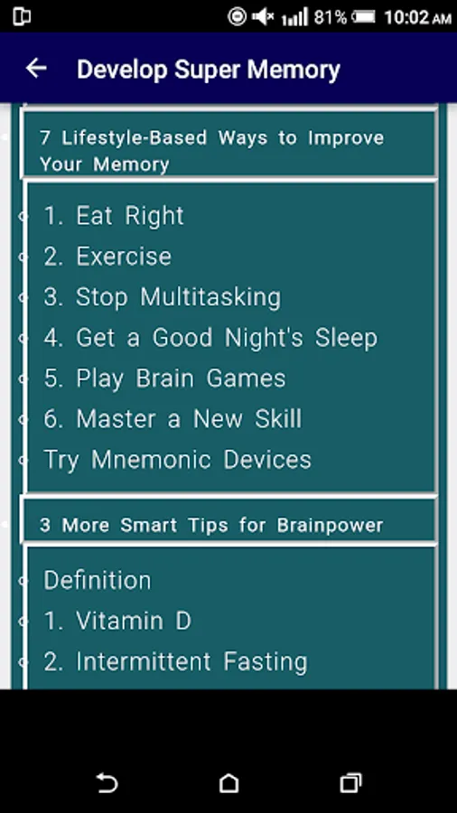 Learn more with the application. Use your brain more powerful and improve your memory.