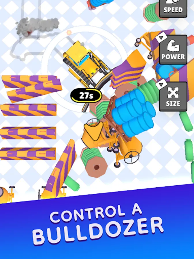 Upgrade your vehicle with three customizable buttons at the beginning of each level to boost your bulldozer's abilities, which will reset when transitioning to a new level. Can you clear all the objects and advance to the next level? Jump into this fun and strategic bulldozer adventure now!"