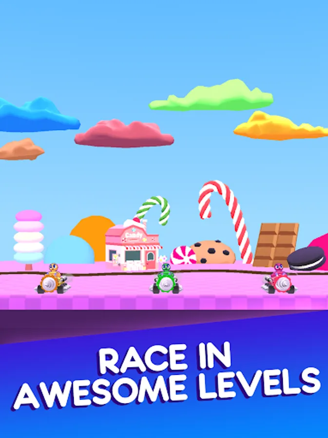 Navigate dynamic race tracks, collect diamonds for points, and aim to finish in top positions to unlock new tracks and climb the rankings.