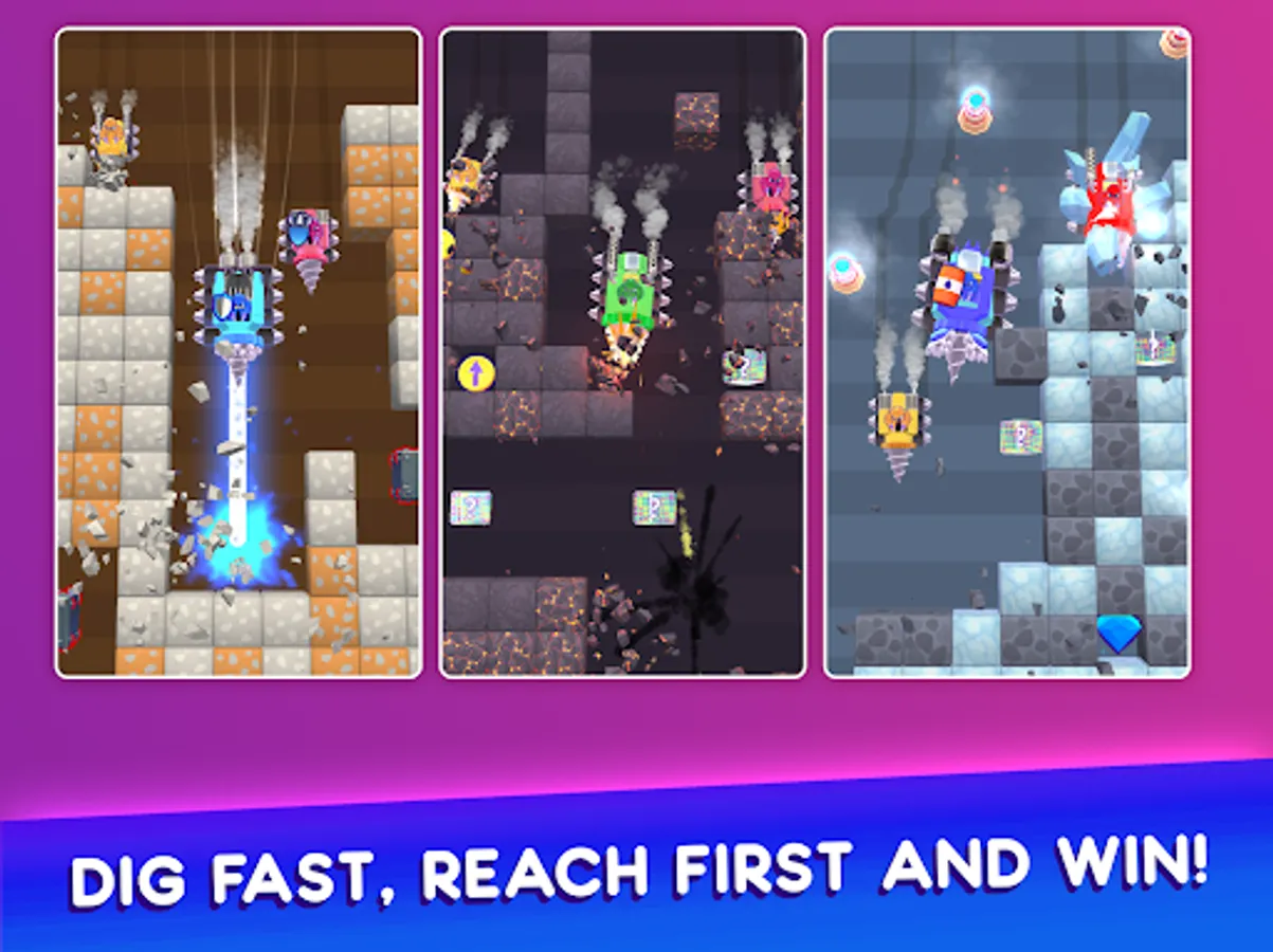 Dig through challenging terrain, encounter obstacles, and discover valuable upgrades and tools along the way. Strategize and use power-ups to gain an edge over your opponents.