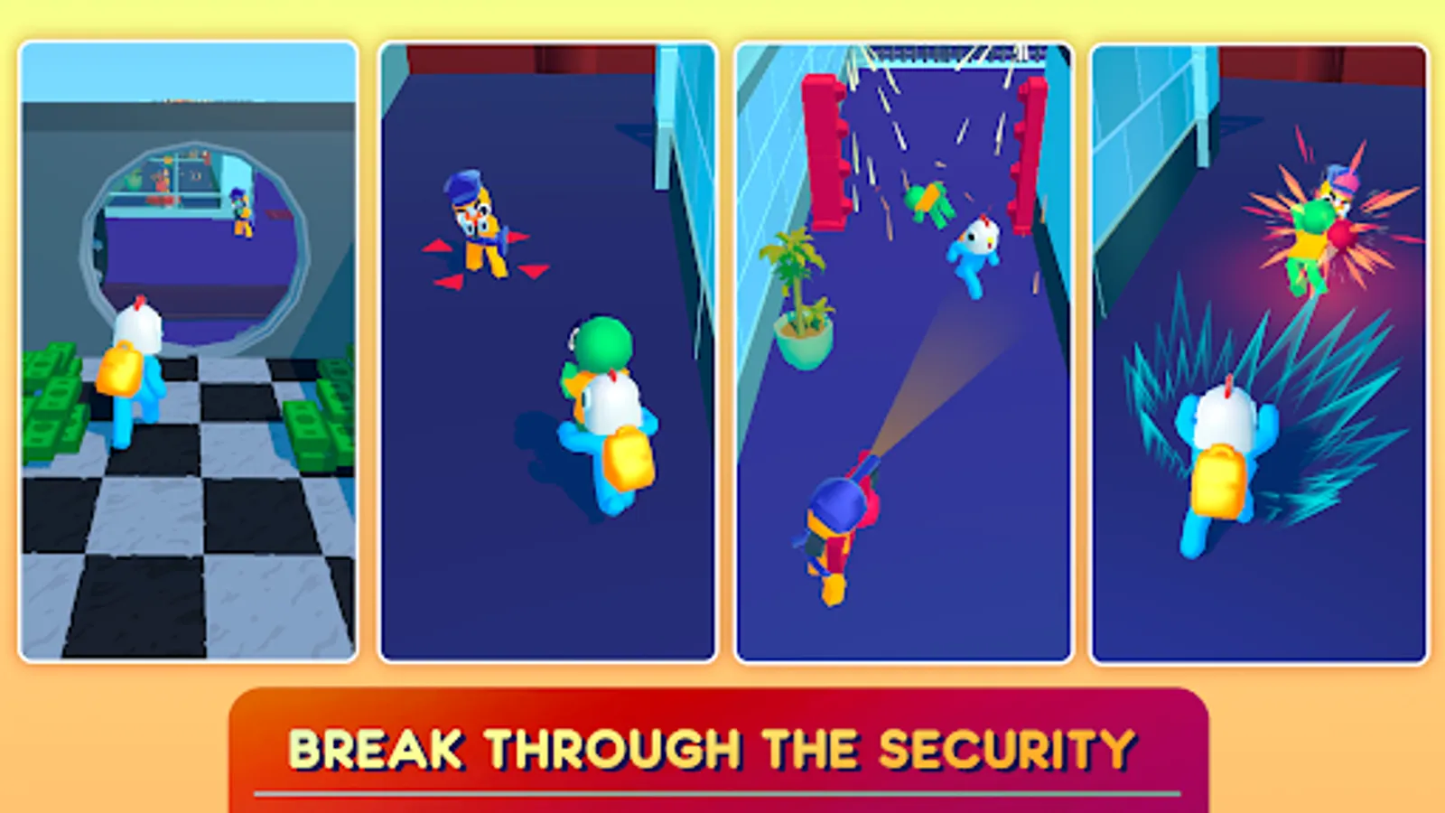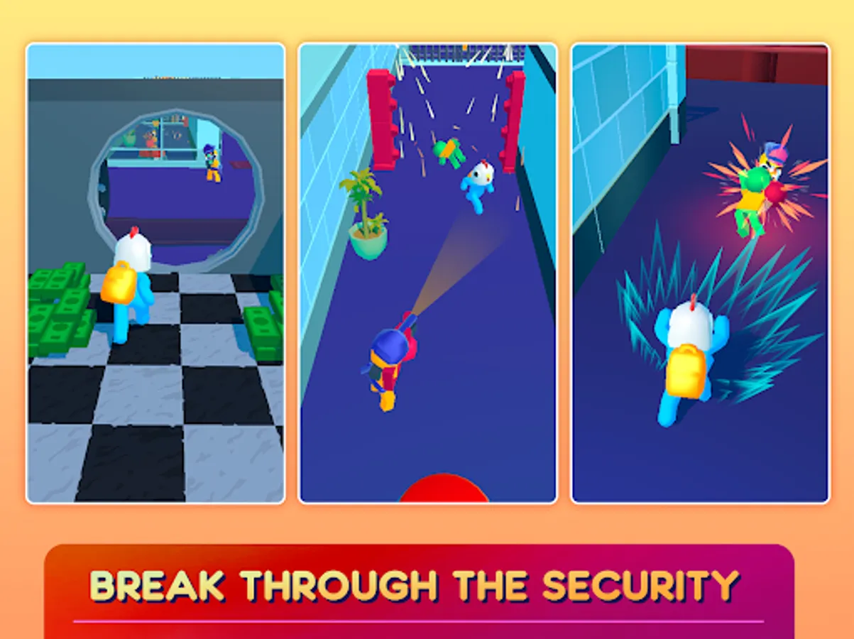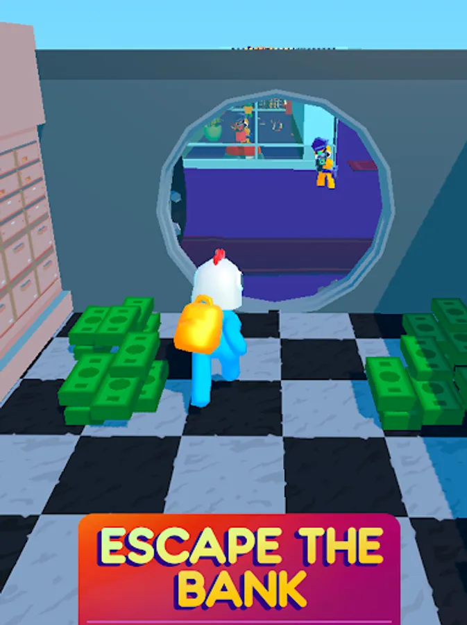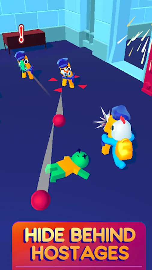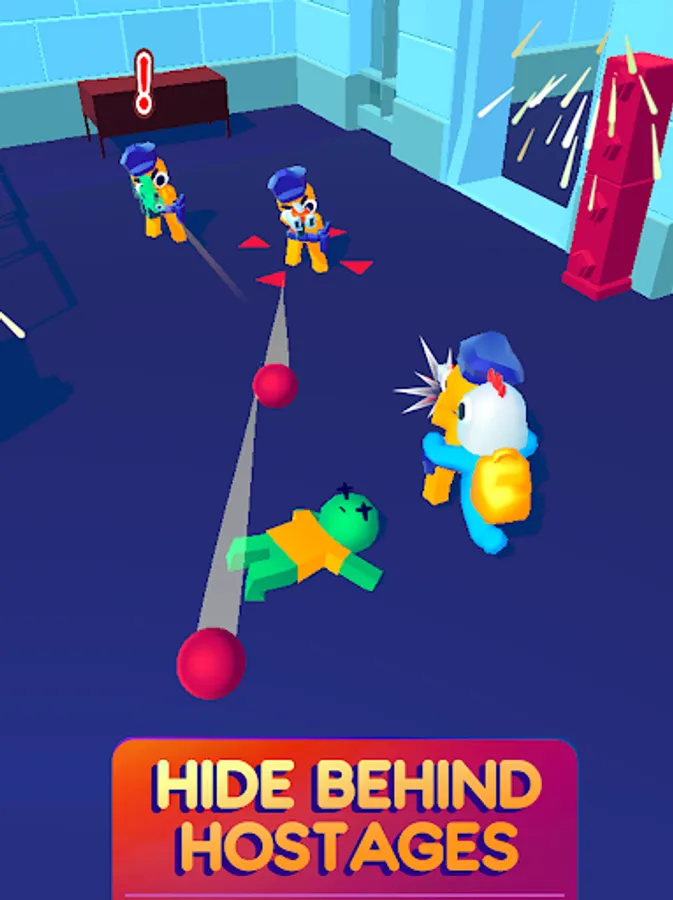 Take advantages of the scared hostages and use them as human shield to scape with the money from a crazy money heist
