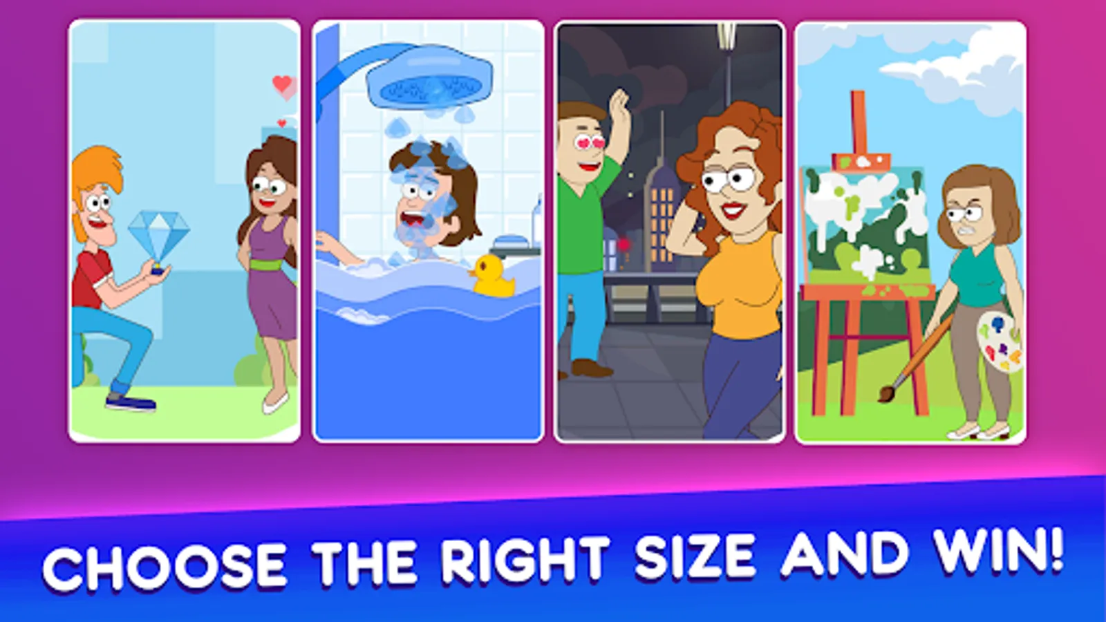 Step into the hilarious world of Size-It, a delightful 2D game filled with funny scenes and entertaining challenges. Each level presents a unique scene where your task is to resize a specific object to achieve the desired outcome. Tap on the object you want to resize, then use simple scrolling gestures to make it larger or smaller. Release your touch to see an amusing animation that reveals if your chosen size is correct or not.
