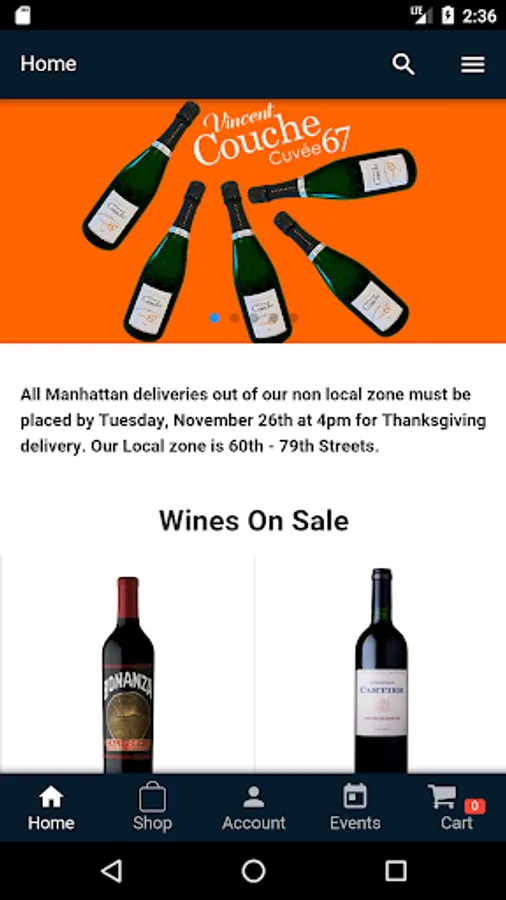A leading wine destination since 1941, 67 Wine & Spirits is pleased to bring its outstanding selection and experienced service to our mobile app. We are consistently rated one of the best wine shops in New York, and you can be assured that you will have access to the same outstanding selection and quality service that has made us a leading wine merchant.