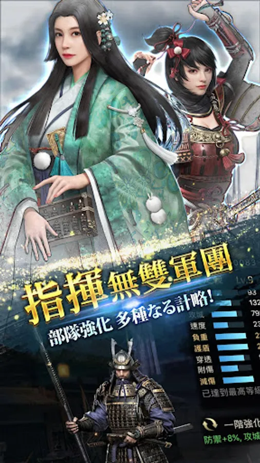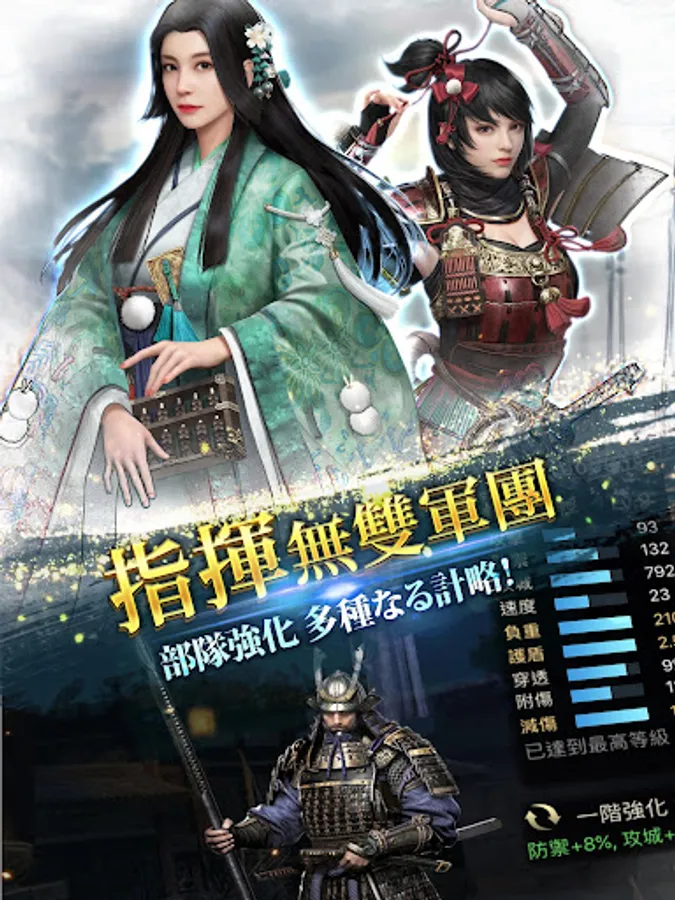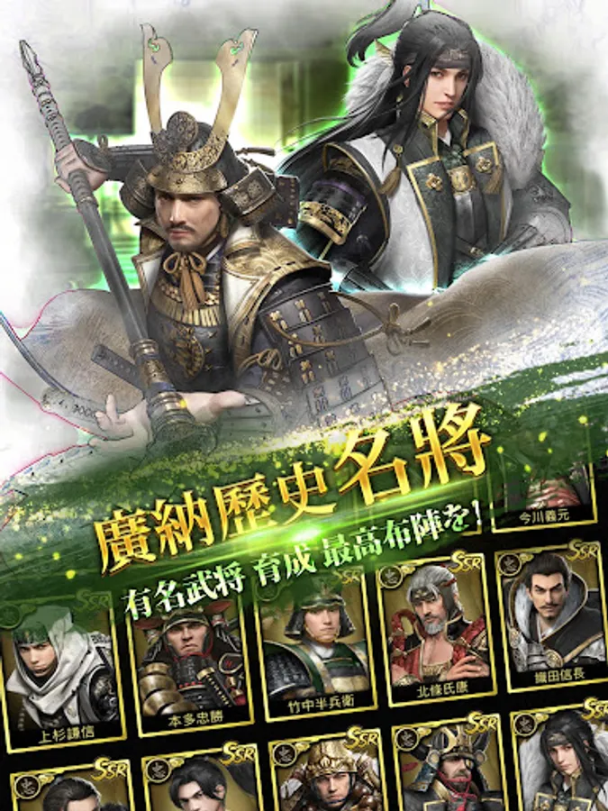 Careful study of Japanese historical facts, highly restored the history of the Japanese Warring States, the creation of the history of the Japanese Warring States mobile game, the highest peak of the role of art creation, breaking through the limits of mobile game screen, leading players to experience the epic scene of the Warring States period.