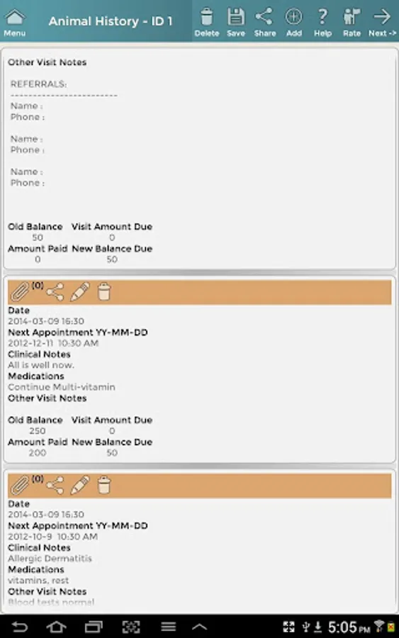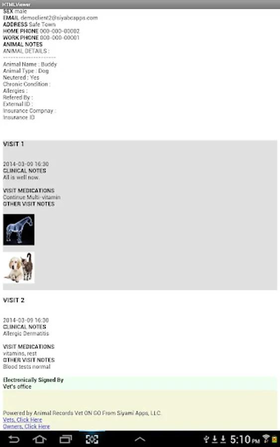 - Add multiple photos, images, voice (for medical transcripts ), files and video attachments to Animal Visits to capture various needs such pictures before and after treatment. You can also scan or take a picture of lab reports, x-rays etc. Use Update Visit Menu to view previous attachments.