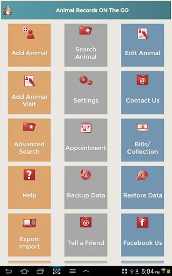 This is the ONLY APP in the MARKET with many features for animal or pet records management to save time for busy veterinarians, doctors, nurses, medical professionals or trainers. Works perfectly fine on both android tablets and mobile smart phones. Powerful software app to boost productivity for Vets. NO Internet, NO Data Plan, NO Mobile network needed for using the app. You can now carry animal data with you anywhere you go.