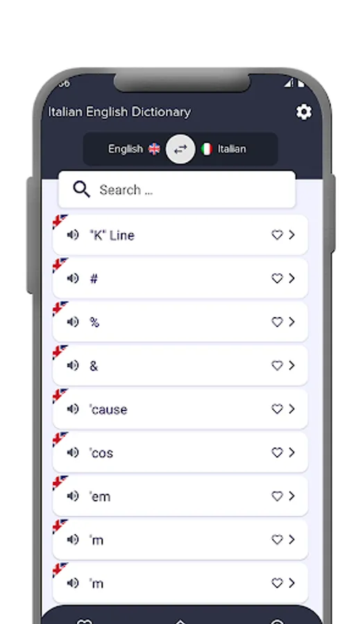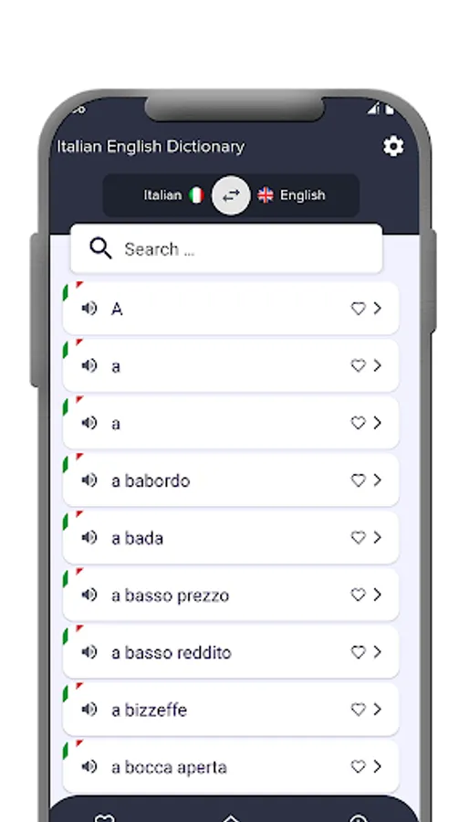 - Support both dictionary direction by switching english – Italian and Italian - english