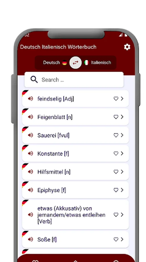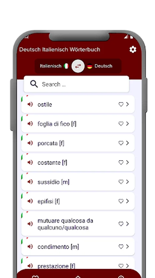 - With the help of only one button "switch" you can switch dictionaries between the German-Italian and Italian-German.
