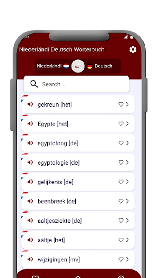 - With the help of only one button "switching" to switch between the German-Dutch and Dutch-German dictionaries.
