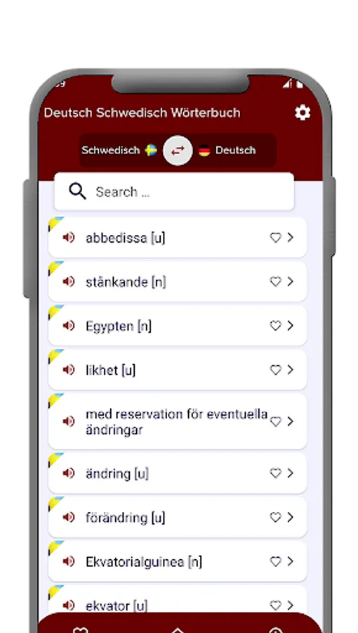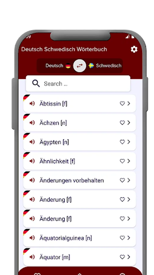- With the help of only one button "switching" to switch between the German-Swedish and Swedish-German dictionaries.
