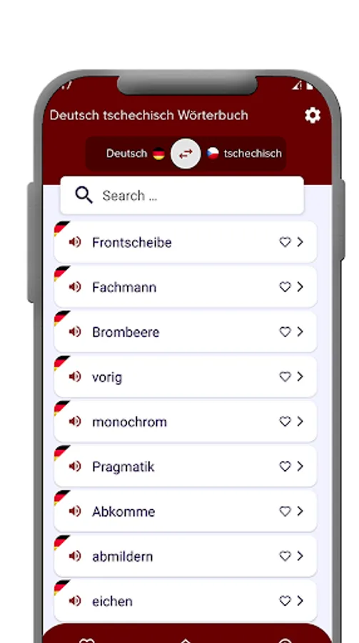 - With the help of only one button "switching" to switch between the German-Czech and Czech-German dictionaries.