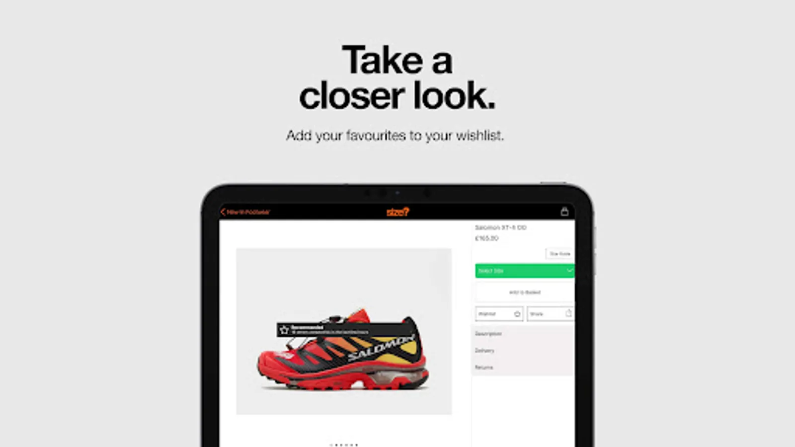 Since 2000 size? has provided access to the latest footwear releases, collaborating with influencers to produce limited edition pairs. With a brand offering that extends from Nike and The North Face, to Dr. Martens and Fred Perry, size? offers an unrivalled collection of apparel and accessories. The size? Android App allows for a seamless browsing experience, with direct access to the latest apparel, footwear, and accessories; as well as the following: