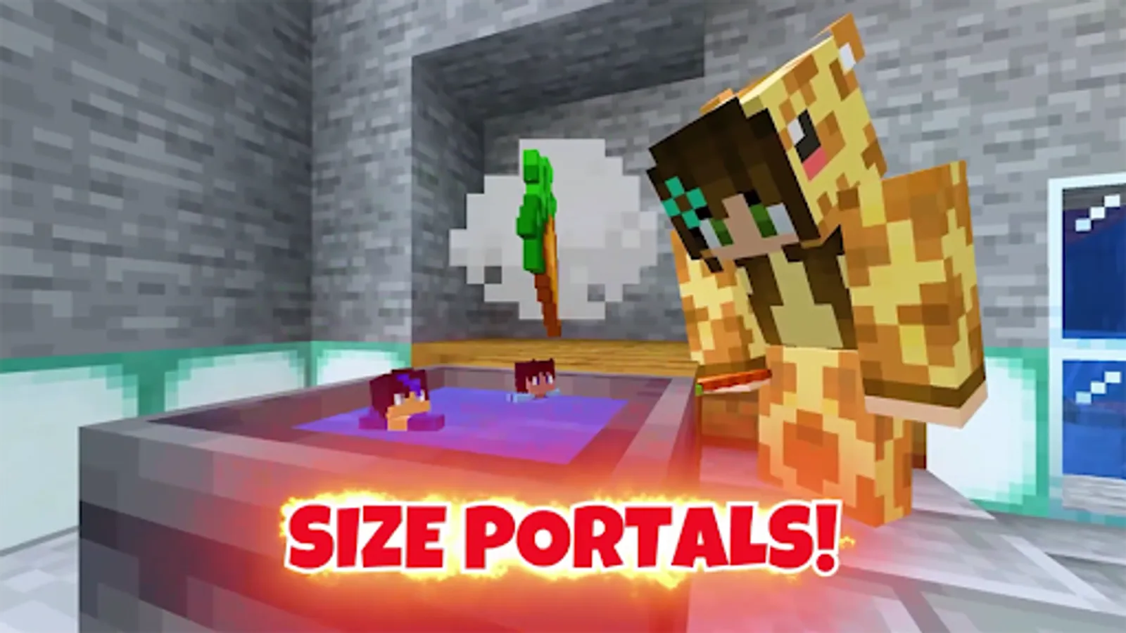 Get ready to feel and experience minecraft pe size change portal mod like you've never seen before! These are size portal not like usual portal gun, it's a size change portal! Other people also call it non-euclidean geometry minecraft with immersive portals mod. On your side portal, you are completely normal but when you go through the size change portal dimension, you can be as big as a giant size or small like really small! If you master these portal mod you can play and do a hide and seek prank with your friends.