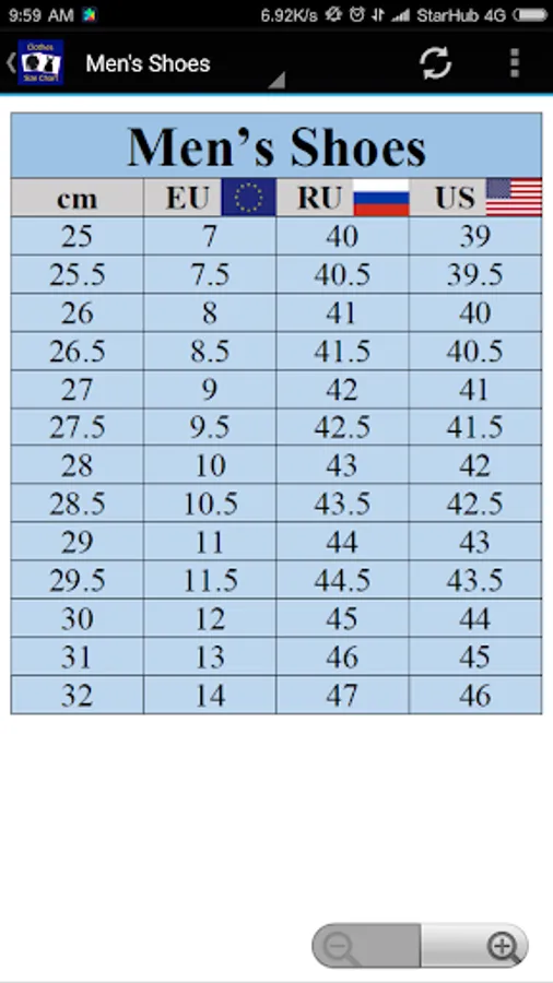 Application to help you to reference and convert between US,UK,EU,JPN sizes.