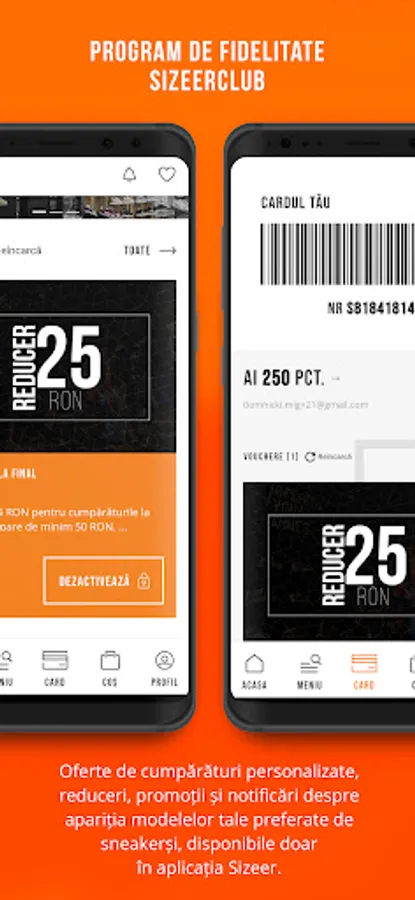 Buy online easily and quickly, directly from the application, collect points and change them into vouchers! In one place you have access to your data and order history with a single click. This way you will always have the receipt at hand and the expenses under control. By shopping, you earn points! With the Sizeer application you get not only access to the most popular trends and the best streetwear items, but also POINTS for each leu spent, because 1 leu = 1 point. Buy online using the application, and when shopping in the showroom scan the digital card from application, and points will be added automatically - you will see with your own eyes when you check the account balance in the application.