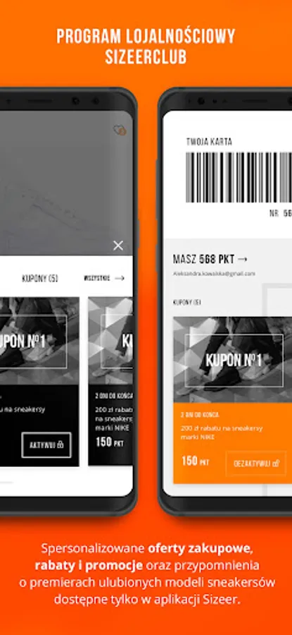 The Sizeer application gives you access to the SizeerClub loyalty program. Collect points, activate coupons and take advantage of unique benefits online and in Sizeer stationary stores. Enjoy privileges reserved exclusively for club members! Personalized in-app purchase offers, discounts and promotions, and reminders of your favorite sneaker launches.