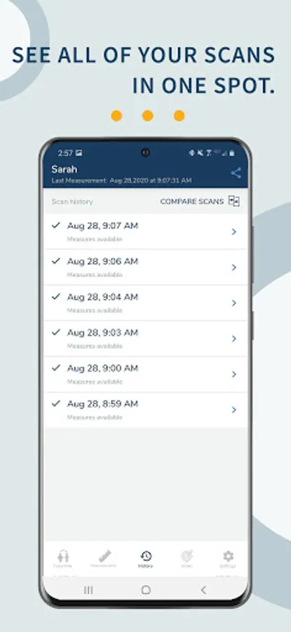 • See your progress over time with the powerful side-by-side comparison of any stored, historical, scans.