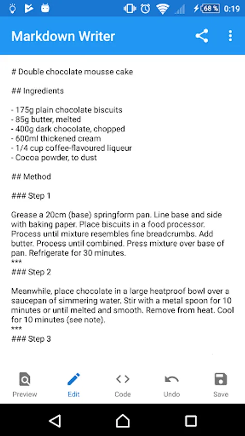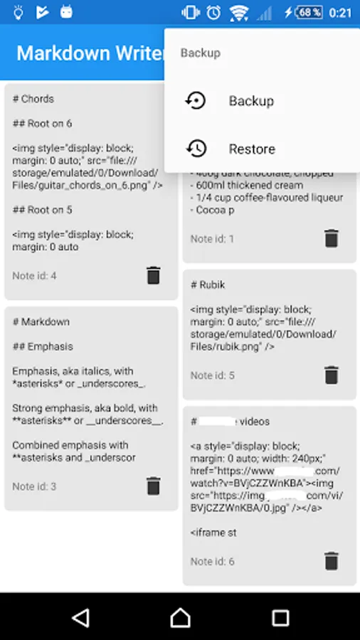 - Backup and restore (to the folder Documents/Markdown Writer).
