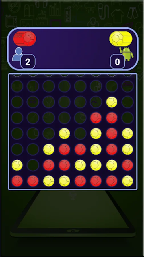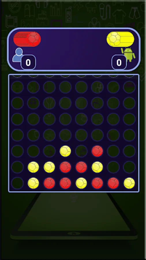 The objective of the game is to connect 4 tiles of your color on the same line (vertical, horizontal or diagonal).