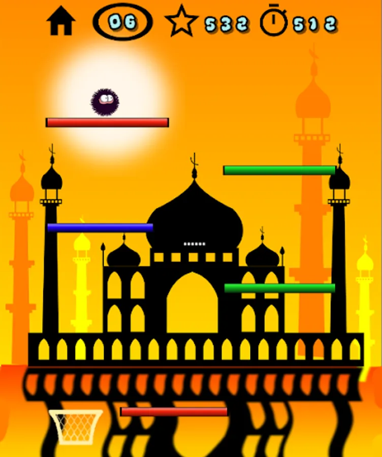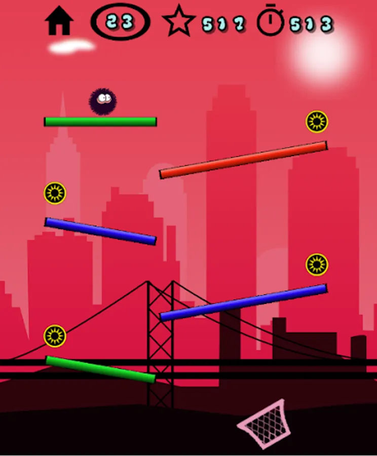Tilt your Smartphone / Tablet to bounce the Bushy Ball into the basket.