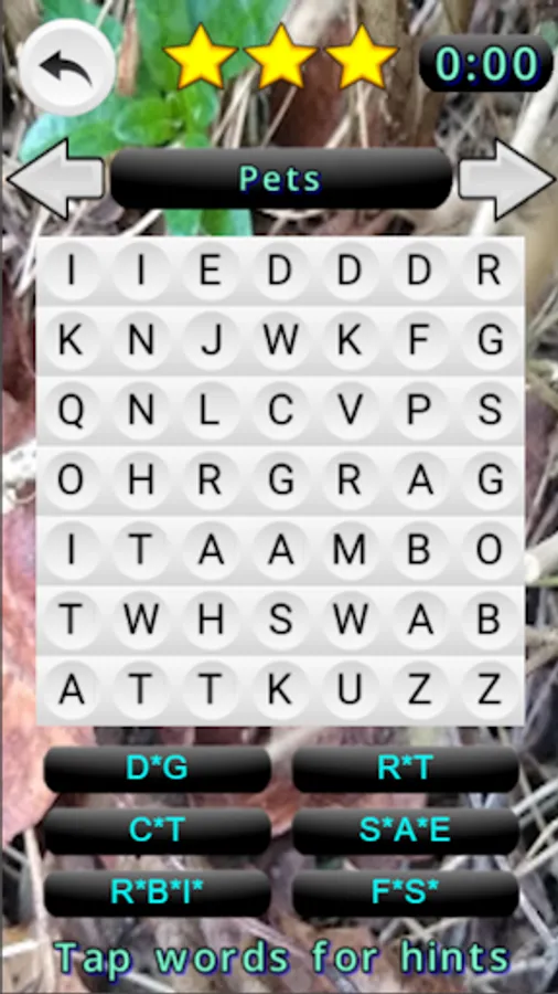 Simply Shuffle letters around to spell the 6 partially hidden words that are at the bottom of the screen.