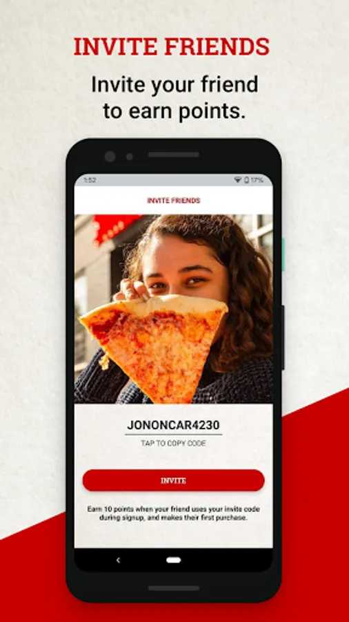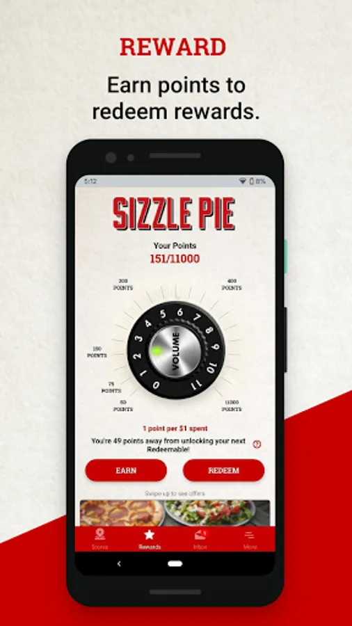 • Earn a pizza point for every dollar spent.